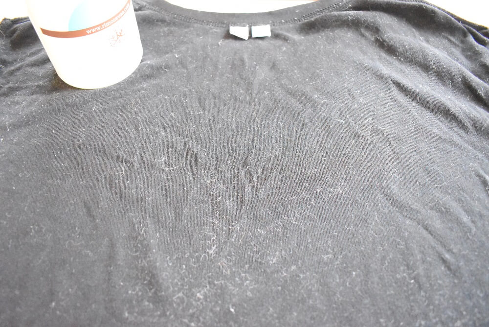 猫の毛が目立ちやすいように、黒のTシャツでリモサボンの効果を確かめてみました。
